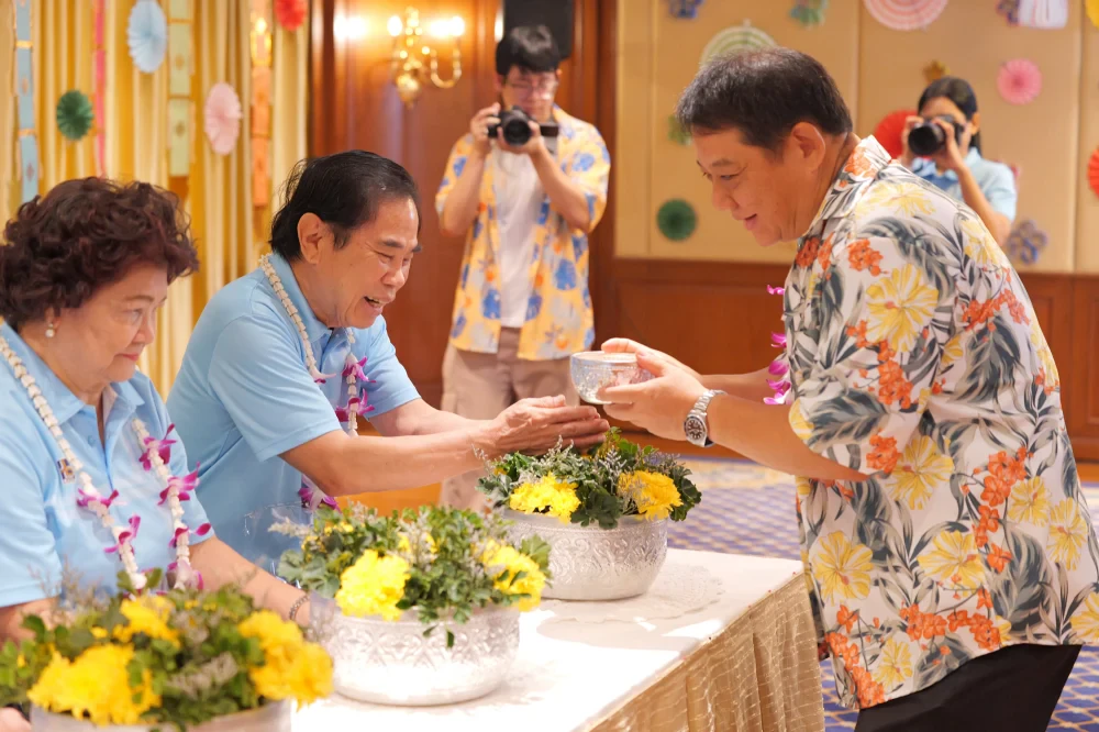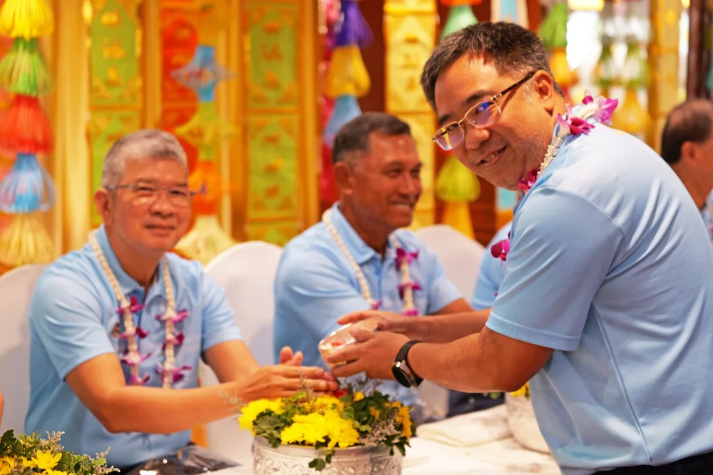 บรรยากาศภายในงานเต็มไปด้วยรอยยิ้มและความอบอุ่น โดยชมรมพนักงานกลุ่มบริษัทล็อกซเล่ย์ได้จัดพิธีรดน้ำดำหัวตามแบบแผนประเพณีไทย ซึ่งได้รับเกียรติจากคณะผู้บริหารระดับสูง นำโดย คุณธงชัย ล่ำซำ ประธานกรรมการ พร้อมด้วย คุณสืบตระกูล สุนทรธรรม, คุณสุรช ล่ำซำ, คุณเฉลิมโชค ล่ำซำ, คุณวสันต์ จาติกวณิช และคณะที่ปรึกษาบริษัท ร่วมให้พรแก่พนักงานอย่างใกล้ชิด สะท้อนถึงวัฒนธรรมองค์กรที่ให้ความสำคัญกับการให้เกียรติและการอยู่ร่วมกันแบบครอบครัว